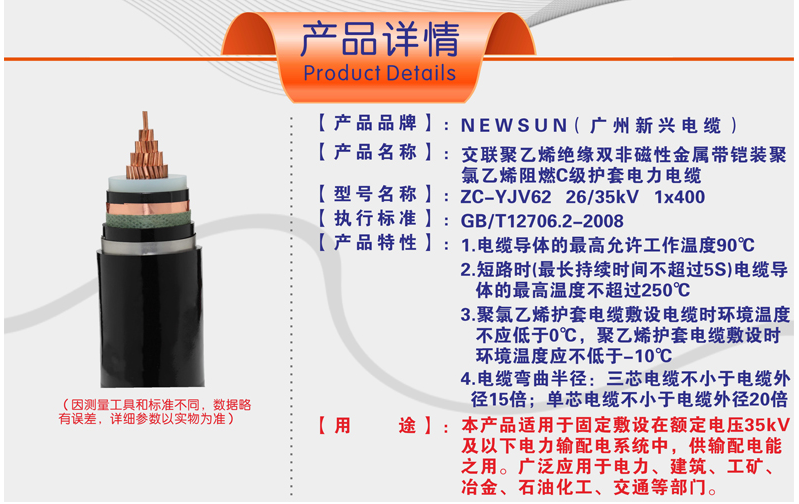 【型號(hào)名稱】ZC-YJV62 26/35KV 1×400