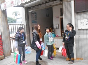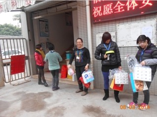 工作人員正在正分派禮品,男同事們頓時也興奮起來了,也要過一把癮。
