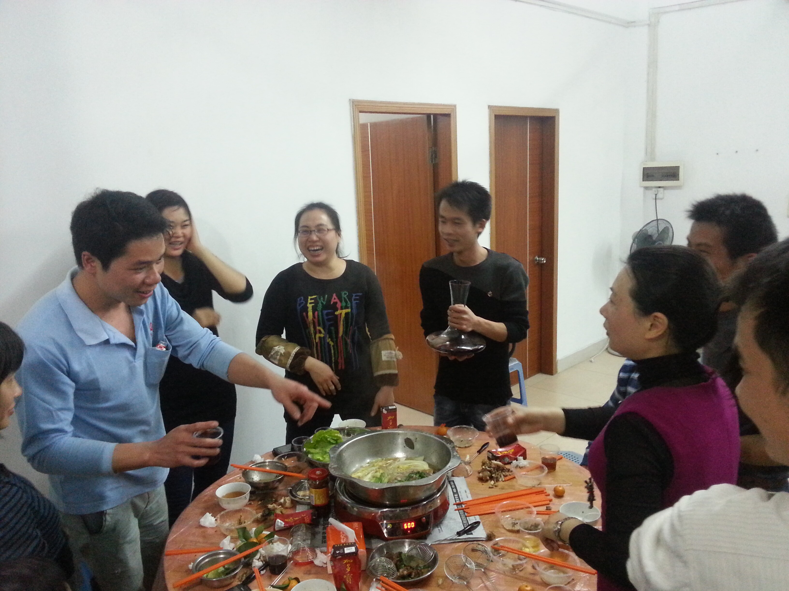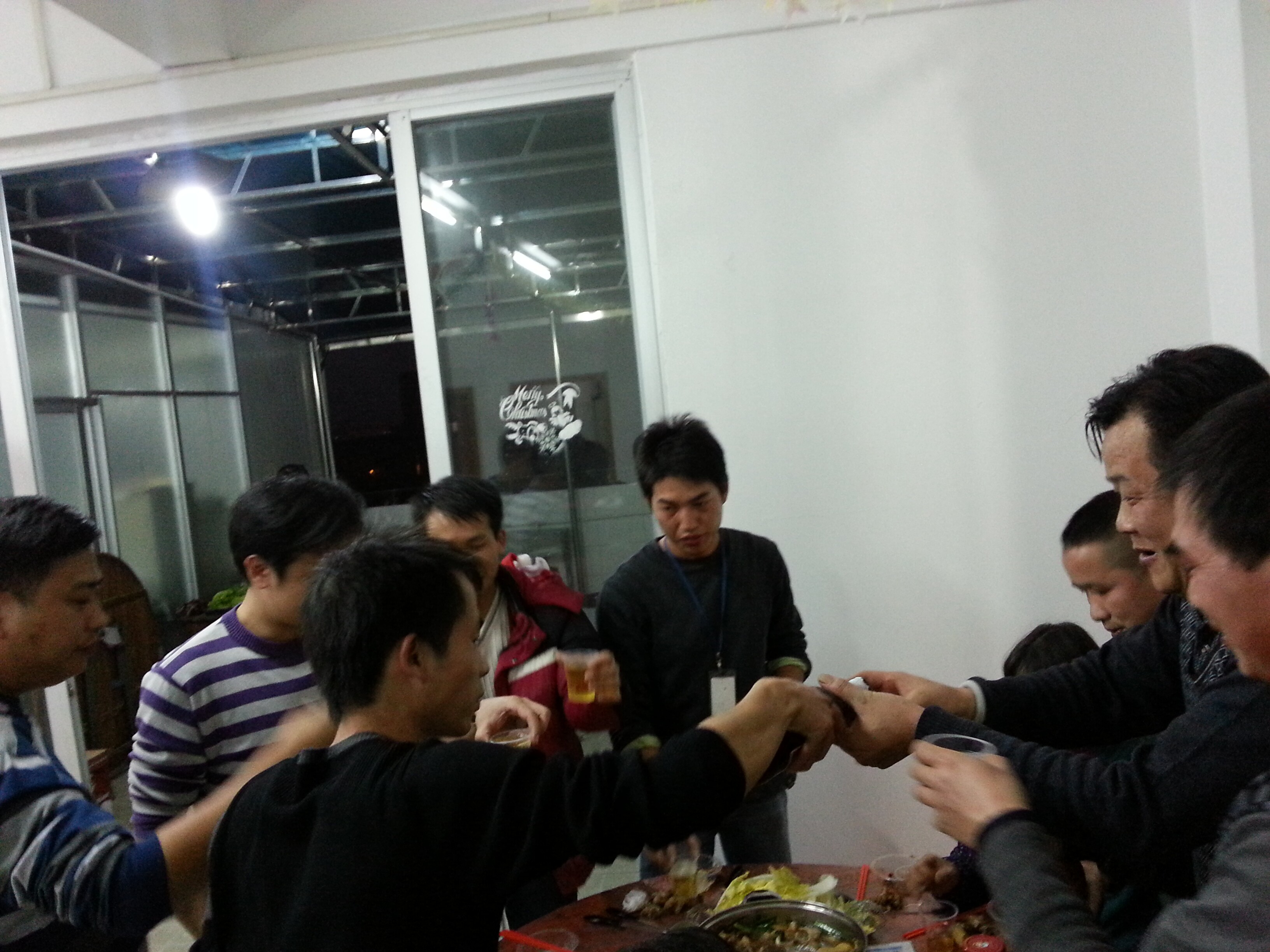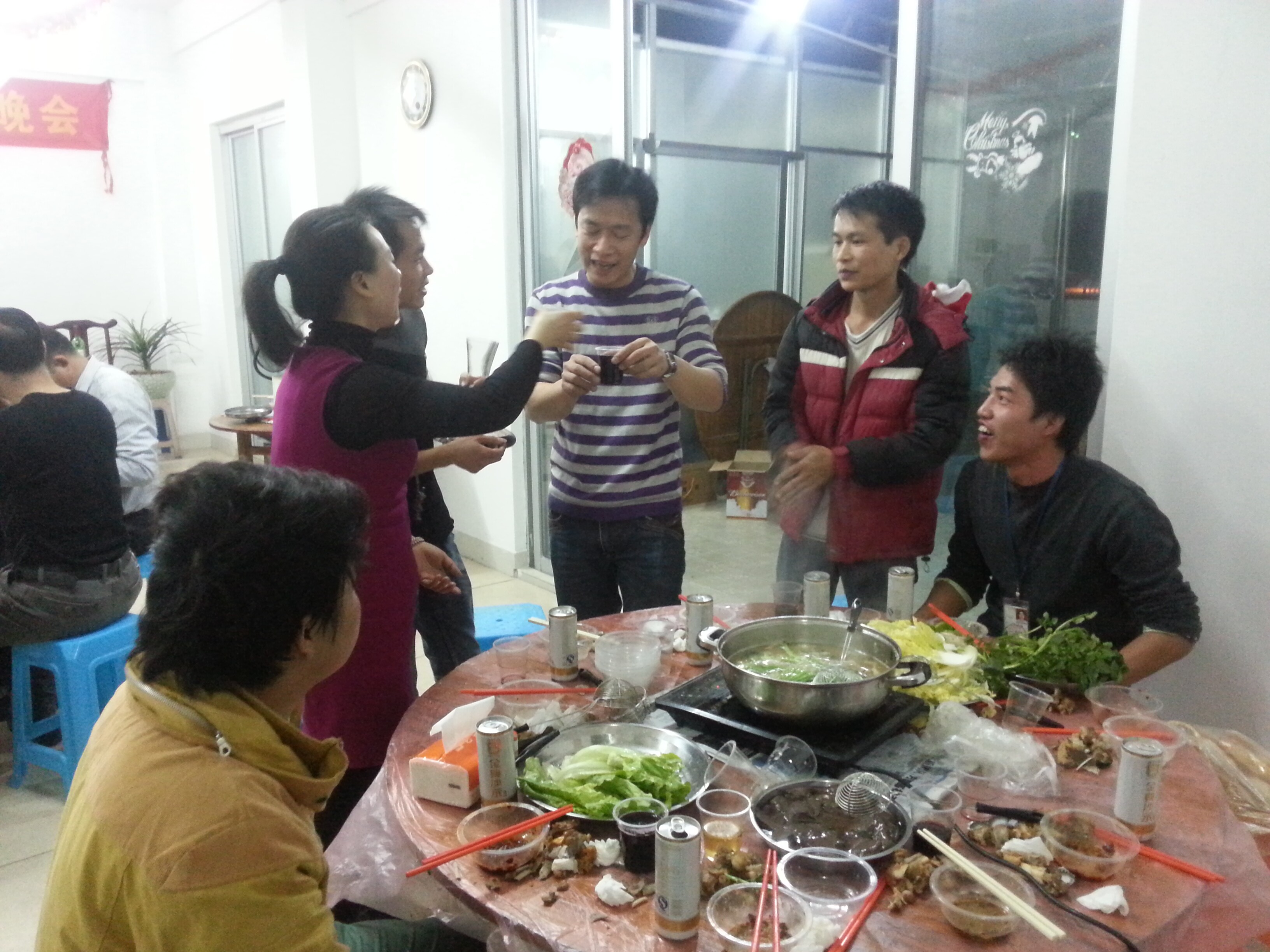 發(fā)布時間:2014-12-25 04:09:04瀏覽次數:3043隨著夜色的漸濃,街燈陸續(xù)亮起,信杰公司第四季度的員工生日聚會暨圣誕平安夜拉開了序幕。經過同事們的齊心協(xié)力,在這冷冷的冬日里,大伙們吃著可口的佳肴,喝著香醇的美酒,讓大家心窩里暖暖的。