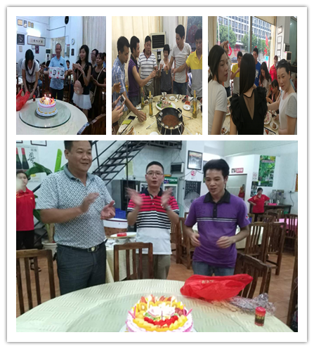 公司后勤部早早就安排好,公司領導及壽星們齊聚一堂,到處都是歡聲笑語。生日宴會上,給壽星們準備了一份由公司對大家最真摯的關懷與祝福,每一位壽星都領取了生日禮物,大家為他們表示祝賀。那一刻,壽星們臉上都綻放幸福的微笑,從心底里感謝公司,感謝領導,感謝同事。