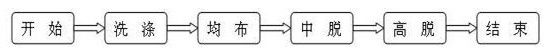 首先,加水,正反轉(zhuǎn)洗滌25分鐘,洗滌完畢后,排水,進(jìn)入脫水階段,脫水階段包括均布、中脫和高脫三個(gè)過(guò)程,均布即是在有水和無(wú)水的情況下,以比洗滌過(guò)程高的轉(zhuǎn)速正向旋轉(zhuǎn)1.5分鐘,使衣物均勻地附著在洗衣機(jī)的滾筒內(nèi)側(cè),以使后續(xù)的脫水過(guò)程平穩(wěn);排水后,提高轉(zhuǎn)速進(jìn)入中速脫水過(guò)程(2分鐘),隨后再進(jìn)入高速脫水過(guò)程(5分鐘),使衣物的含水率降至所要求的水平。